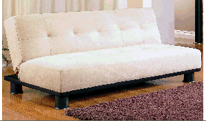 The 'Venus' convertible sofa is one of our favorites. It has a solid metal frame and is available in White, Brown or Black Vinyl, and Brown or Black Microfiber. Only $339.99!