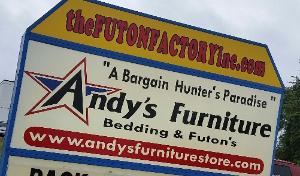 The Futon Factory is now part of Andy's Furniture! Still locally owned and the same management (Mary) that we have since we were on Grape Rd. 20 years ago! Now we carry Andy's made in America furniture and mattresses along with our full line of Futons!